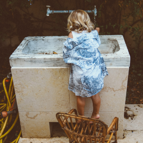 • Nos teintures à base d’eau, plus respectueuses de la peau et de l’environnement, peuvent légèrement s’estomper avec le temps, apportant un joli effet vintage au fil des lavages.
